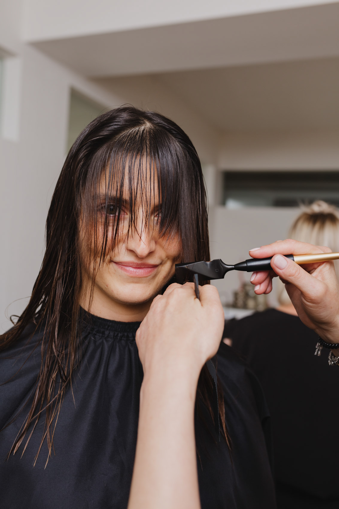 Der calligraphy cut ist für den/die Kund*in ein völlig neues Schneideerlebnis, das an eine Kopfmassage erinnert, sehr sinnlich wahrgenommen wird. Frauen und Männer greifen in ihre calligraphierten Haare und sind einfach nur happy über das neue Haargefühl.